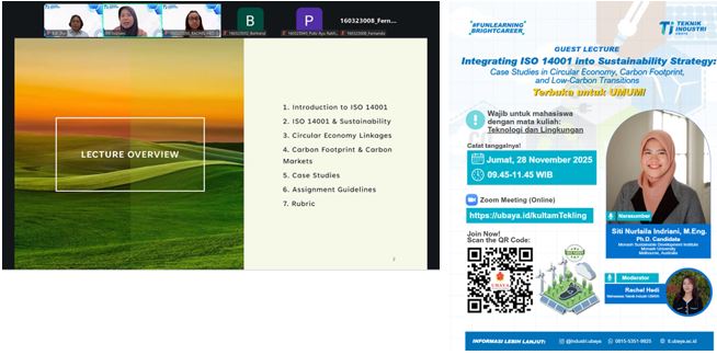 December 3, 2025 Integrasi ISO 14001 dalam Strategi Keberlanjutan: Pembelajaran dari Implementasi di Dunia IndustriProgram Studi Teknik Industri Universitas Surabaya (UBAYA) kembali menyelenggarakan kuliah tamu (kultam) dengan tajuk "Integrating ISO 14001 into...
